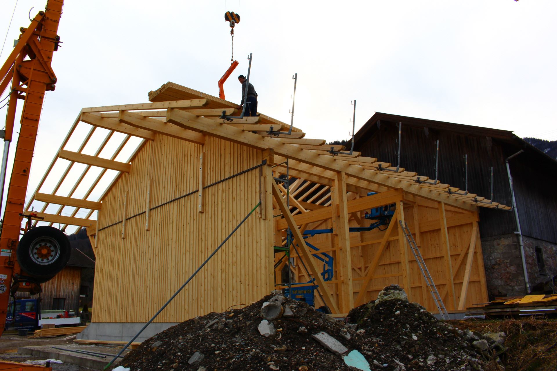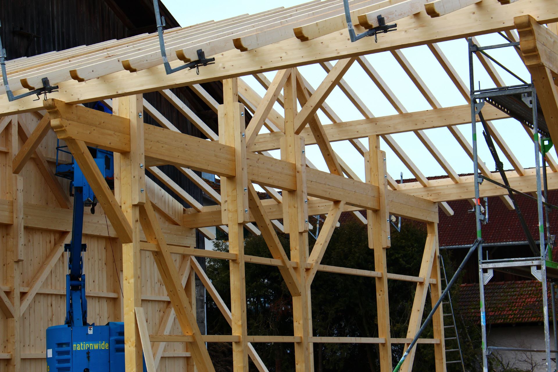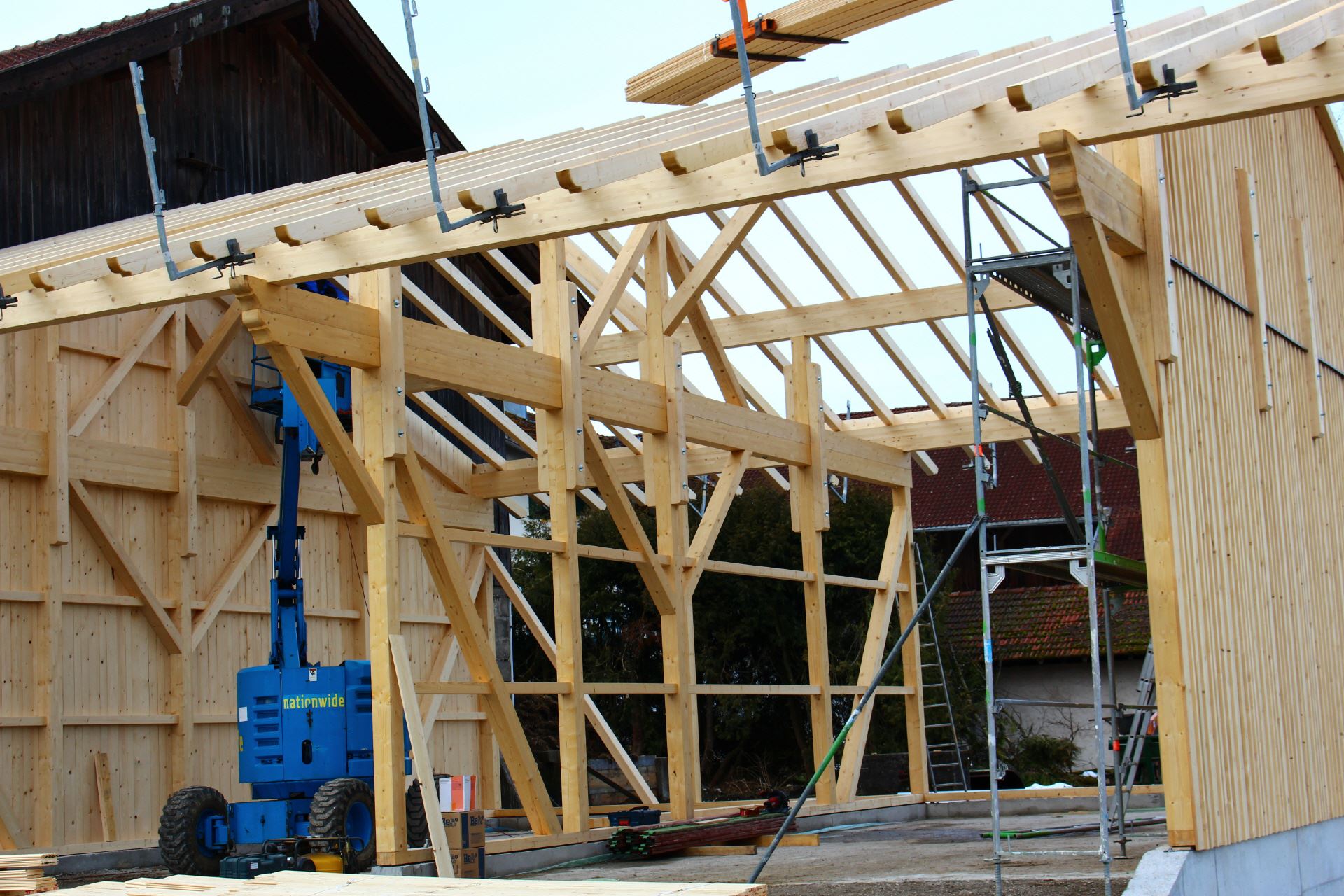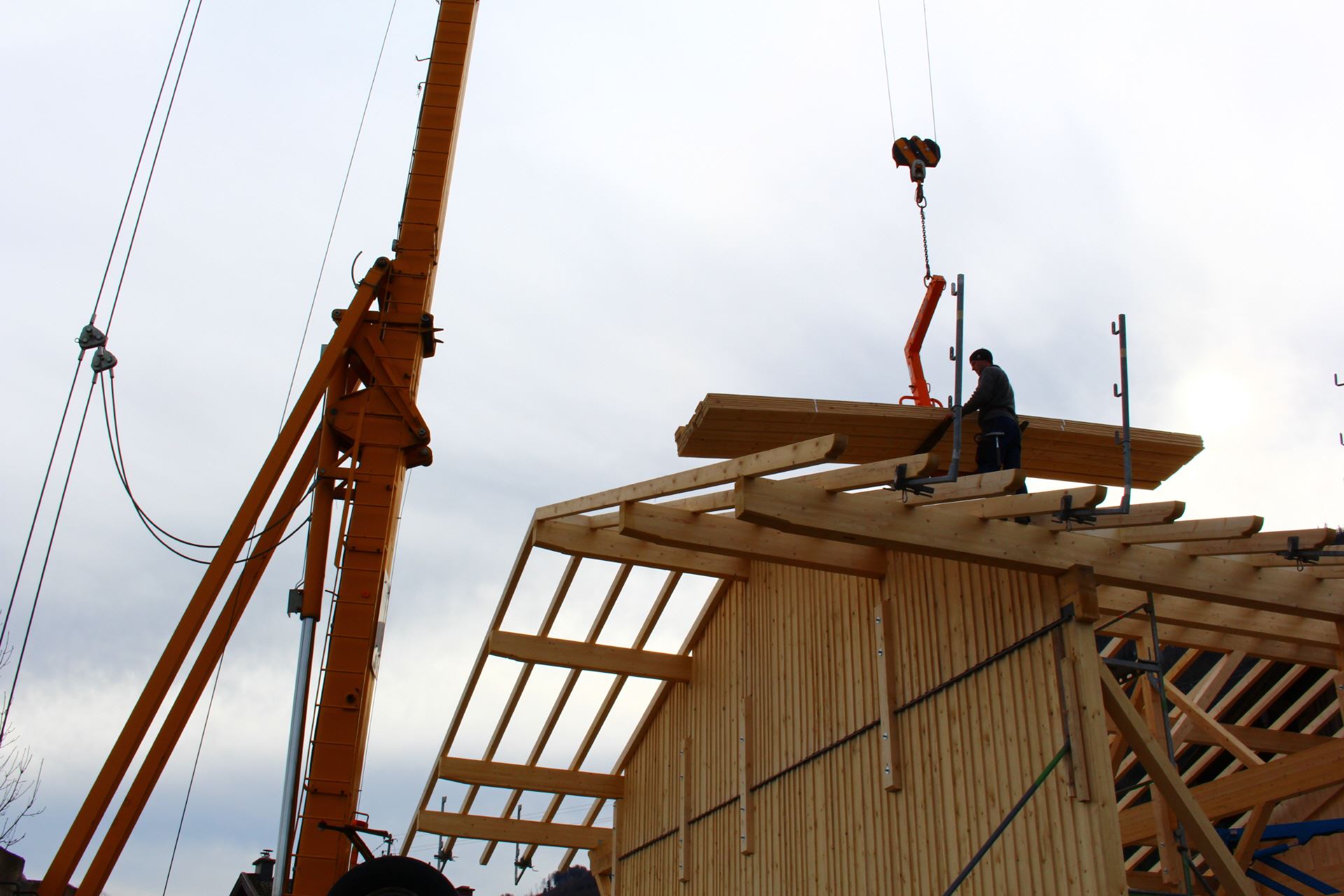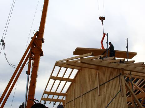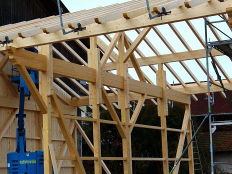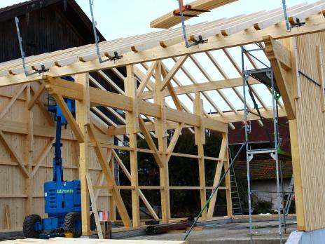 Wir verwenden Holz als vorherrschender Baustoff in Verbindung mit anderen sinnvoll eingesetzten Materialien. Mit arbeitswirtschaftlich vorbildlich optimierten Abläufen